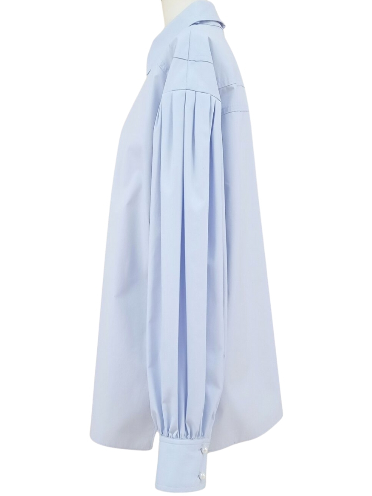 前後差(アシンメトリー)がカギ!ブラウスを今っぽくする着丈詰めリフォーム 2025年10月10日 最終更新日時 : 2025年10月10日 お直しクラブ大阪リパリ本町店 Before After 今回は、シンプルなブラウスを前後差(アシンメトリー)をつけて短くし、一気に今風に生まれ変わらせたリフォーム事例をご紹介します。元のデザインは前後差のないベーシックなものでしたが、前に比べて後ろの丈を長くすることで、着るだけでこなれ感が出るトレンドのデザインに。ただ短くするだけでなく、デザインを加えることで、ブラウスが持つ魅力が格段にアップしました。あなたのブラウスも、この前後差リフォームで蘇らせてみませんか? ★着丈を短くした前から(Before&After)の画像★ FacebookX
