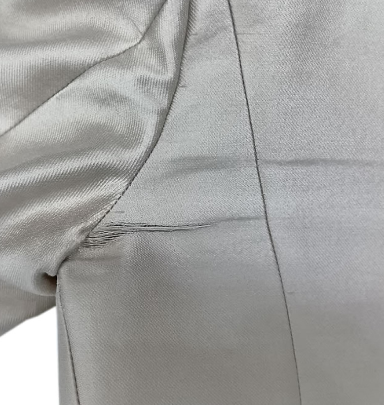 捨てるのはもったいない!ジャケットの破れを共布で元通りに 2025年8月22日 最終更新日時 : 2025年10月4日 お直しクラブ大阪リパリ本町店 Before After 大切なジャケットの脇が破れてしまい、もう着られない…と落ち込んでいませんか? 今回ご紹介するのは、そんなジャケットを救い出した修理の事例です。一見、修理は難しそうに見えますが、実はポケットの裏地を使うことで、破れた部分をきれいに補修することができます。写真でご覧いただけるように、破れていた部分がしっかりと塞がり、自然な仕上がりになっています。 このように、一見難しいと思える修理も、適切な技術と発想があれば可能です。諦める前に、まずはご相談ください。大切な一着をこれからも長く着るお手伝いをさせていただければ幸いです。 FacebookX