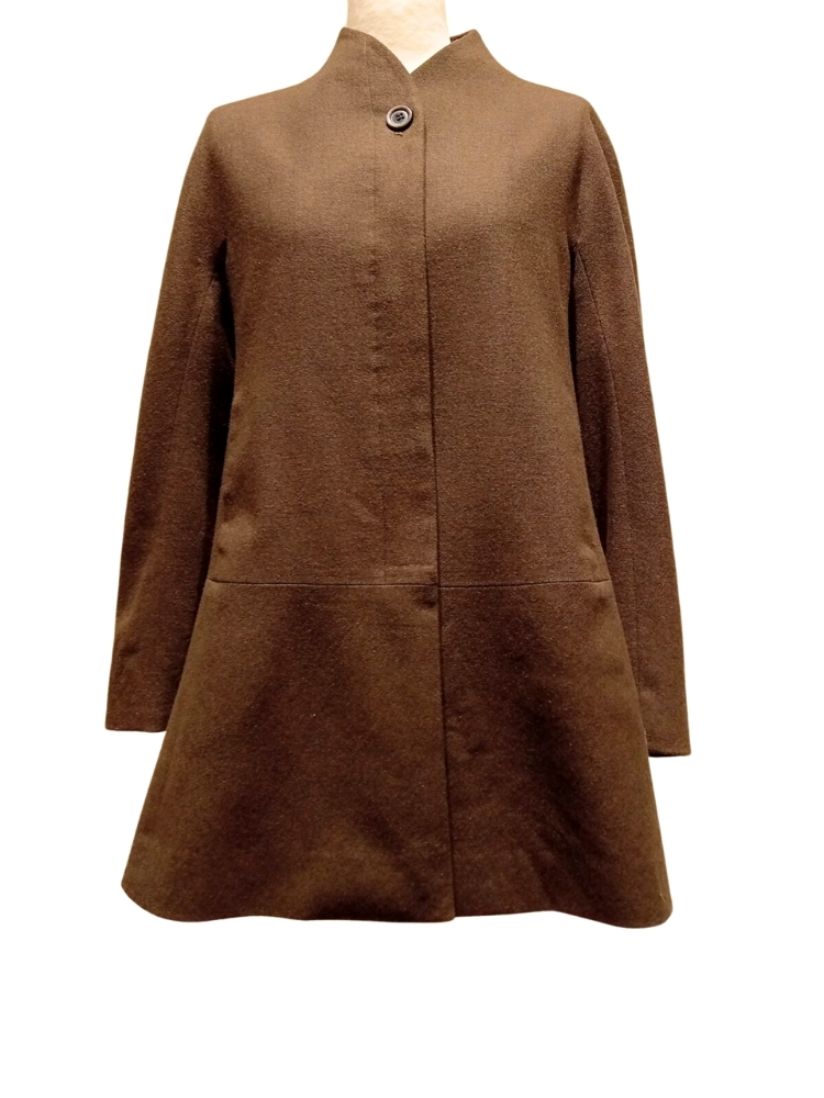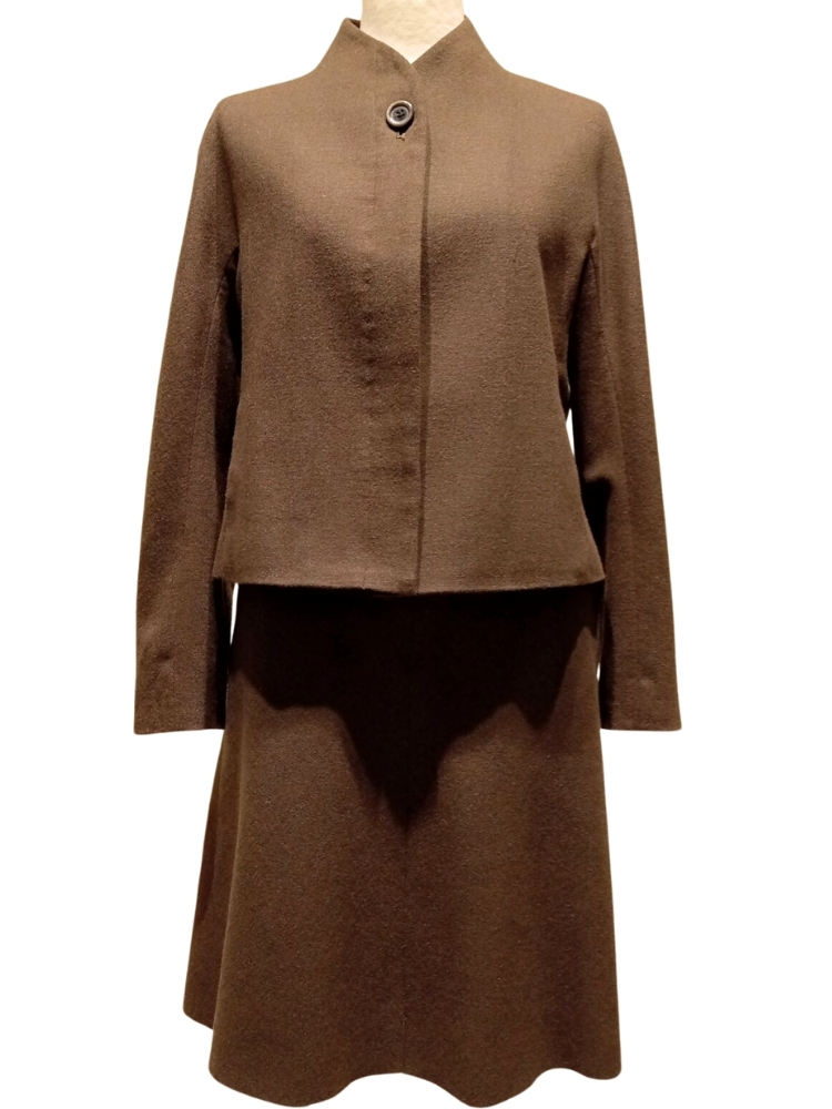 ジャケットとスカートの異なるパーツを巧みに組み合わせ、スーツならではの上品な素材感を活かしたワンピースが完成しました。ビフォーアフターを見比べると、その劇的な変化にきっと驚くはずです。
